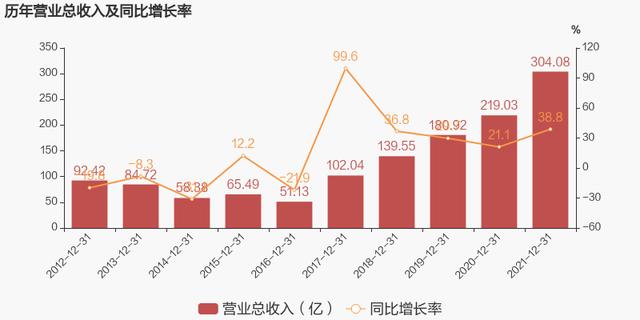 本文摘要:北方稀土于2022年4月15日披露年报,公司2021年实现营业总收入304.1亿,同比增长38.8%,增幅连续5年保持在20%以上;实现归母净利润51.3亿,同比增长462.3%,增幅创5年新高;每股收益为1.42元。经营性现金流大幅上升4… …