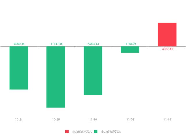 昨日(2020-11-02)该股净流出金额-3954.16万元,主力净流出-3306.33万元,中单净流出-670.75万元,散户净流入22.92万元。