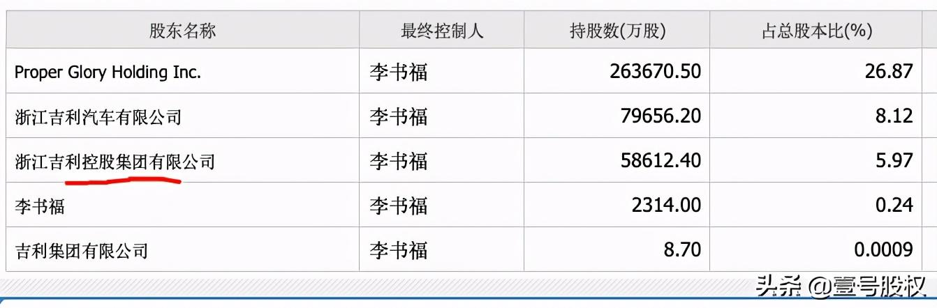 吉利控股集团是母公司,实际控制人都是李书福,他的资产不仅仅是上市公“吉利汽车”,旗下还拥有领克、几何、沃尔沃、极星、宝腾、路特斯、英伦汽车、远程新能源商用车等品牌。