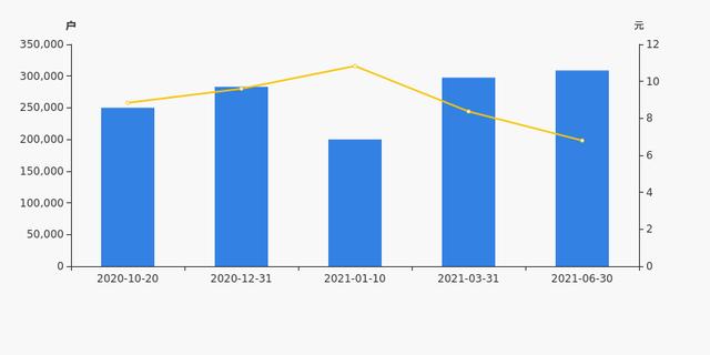 2020年10月20日至今,公司股东户数显著增长,区间涨幅为23.53%。2020年10月20日至2021年6月30日区间股价下降23.04%。