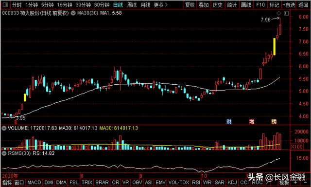 神火股份,在突破前期盘整之后,走了八连阳,同时成交量呈现出放量的态势。