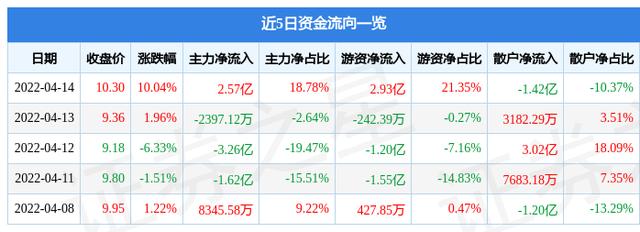 资金流向数据方面,当日主力资金净流入2.57亿元,游资资金净流入2.93亿元,散户资金净流出1.42亿元。近5日资金流向一览见下表: