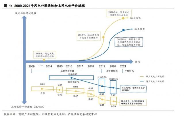 供给侧:自 2009 年开始,我国风光电价政策模式经历了“标杆电价-指导价-平价”的转型。2021 年是国内陆上风电行业的平价元年,新核准的陆上风电项目全面实现平价上网,国家不再补贴。海上风电也即将退补,大容量风机的不断推出是降本核心驱动力。根据金风科技的数据,今年9月3S机型风机的招标价格已经降至2410 元/kw,4S降至2326 元/kw,相比年初分别下降20.8%、22.2%。