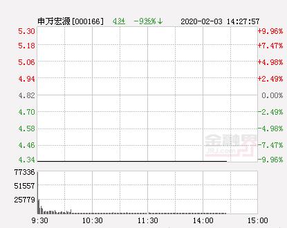 金融界网站2月3日讯 今日申万宏源开盘报4.34元,截止11:15分,该股跌9.96%报4.34元,封上跌停板。
