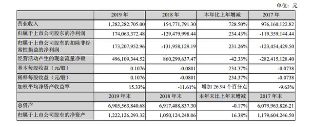 津滨发展股份有限公司发布年报,2019年度实现营业收入12.82亿元,同比增长728.5%;净利1.74亿元,扭亏为盈,上年亏损1.29亿元。在发布年报的同时,津滨发展还发布公告,拟向深交所申请撤销退市风险警示。