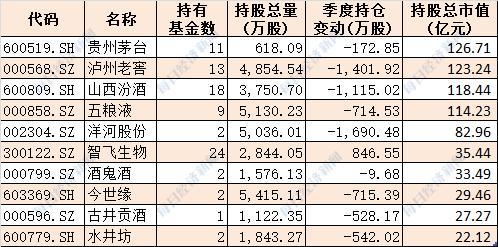 招商基金四季度重仓白酒,前十大重仓股中有9只白酒股,分别为贵州茅台、泸州老窖、山西汾酒、五粮液、洋河股份、酒鬼酒、今世缘、古井贡酒和水井坊,不过这9只白酒股季内都出现了减持,另外一只重仓股为智飞生物,季内增持了847万股。