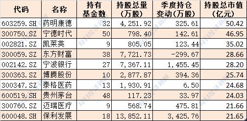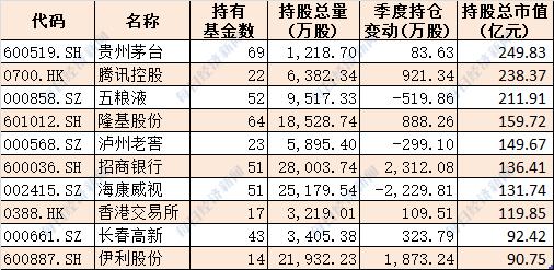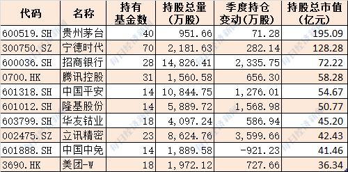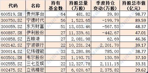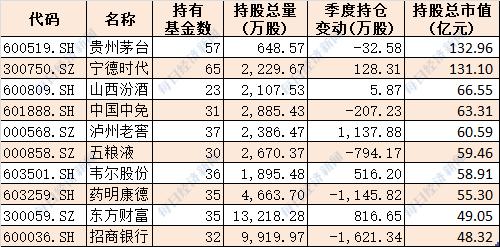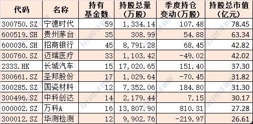 十大基金公司最新重仓股