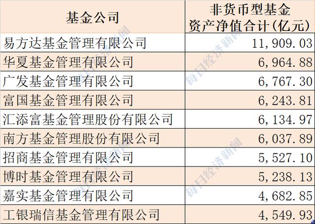 易方达、华夏、广发非货基规模位居前三