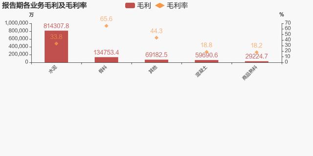 从业务结构来看,“水泥”是企业营业收入的主要来源。具体而言,“水泥”营业收入为240.7亿,营收占比为74.1%,毛利率为33.8%。