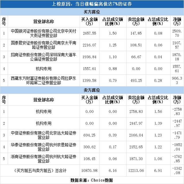 买一为中国银河证券北京中关村大街证券营业部,该席位买入2657.55万元,卖出147.85万元,净买额为2509.70万元。近三个月内该席位共上榜318次,实力排名第14。中国银河证券北京中关村大街证券营业部今日还参与了中嘉博创(净买额2587.47万元),登海种业(净买额2584.11万元),龙宇燃油(净买额-910.62万元)等4只个股。