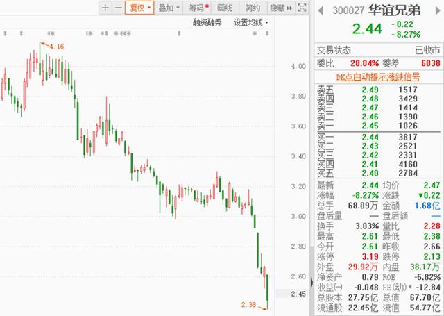本文摘要:记者 | 胡振明编辑 | 4月28日,华谊兄弟(300027.SZ)股价收于2.44元/股,跌8.27%,盘中触及2.38元/股(-10.53%)的新低。自2022年初股价触及阶段性高点4.16元/股以来,华谊兄弟市值已经蒸发逾41%,总市… …