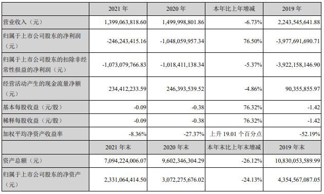 2021年华谊兄弟归属于上市公司股东的净利润为-2.46亿元,和2020年度-10.48亿元相比则增加了76.50%(减少亏损),跟2019年巨亏39.78亿元相比,如今的亏损已经大幅缩小。不过,若按扣非后的净利润分析,2021年的-10.73亿元仍比上年的亏损略有扩大。