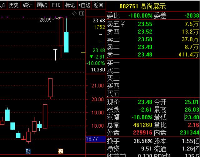 在连续4个涨停之后,11月9日的易尚展示反其道而行之低开低走,并在收盘的最后一刻,录得跌停,处于板块垫底位置。