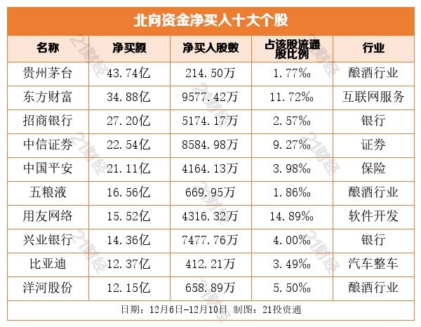 从个股来看,净买入十大个股中大多数都是白马蓝筹股。其中,白酒股最受青睐,贵州茅台、五粮液、洋河股份分别获净买入43.74亿、16.56亿、12.15亿元;大金融板块中的招商银行、中信证券、中国平安、兴业银行均获大幅增持。