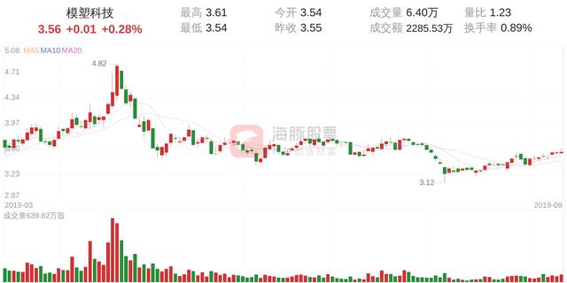 模塑科技今日上涨0.28%,股价为3.56元,成交金额为2285.53万元,成交6万手,换手率为0.89%。