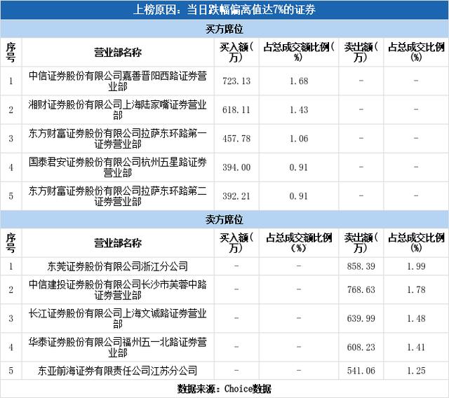 买一席位是中信证券(浙江)嘉善晋阳西路证券营业部,该席位买入金额为723.13万元,占该股总成交额的1.68%。该营业部三个月内上榜3次,实力排名第1592。