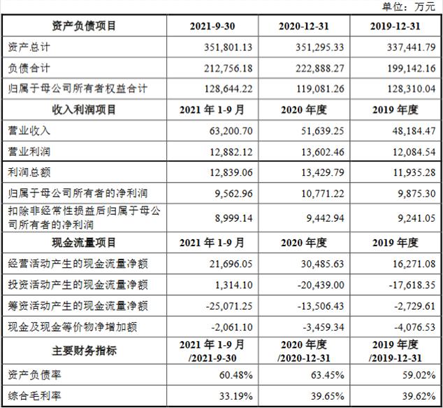 2019年、2020年和2021年1-9月,紫光环保实现营业收入分别为48,184.47万元、51,639.25万元和63,200.70万元,实现归属于母公司所有者的净利润分别为9,875.30万元、10,771.22万元和9,562.96万元,实现扣除非经常性损益后归属于母公司所有者的净利润分别为9,241.05万元、9,442.94万元和8,999.14万元,经营活动产生的现金流量净额为16,271.08万元、30,485.63万元和21,696.05万元。