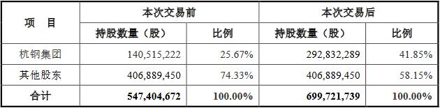 本次交易中,根据交易各方签署的《发行股份购买资产协议》,上市公司拟以6.01元/股的股份发行价格向杭钢集团发行152,317,067股股份,即本次交易后,新增股份数量为152,317,067股。