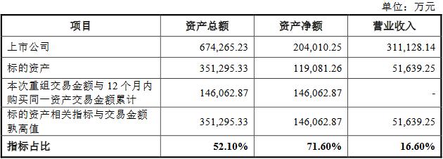 根据上述12个月内购买同一资产事项,本次交易标的资产财务数据及交易作价与上市公司2020年度相关财务数据比较,标的资产的资产总额占上市公司的比例为52.10%,标的资产的资产净额占上市公司的比例为71.60%,标的资产的营业收入占上市公司的比例为16.60%。根据《重组管理办法》的相关规定,本次交易标的资产的资产总额、资产净额占上市公司最近一个会计年度经审计的资产总额、资产净额的比例达到50%以上,本次交易构成上市公司重大资产重组。