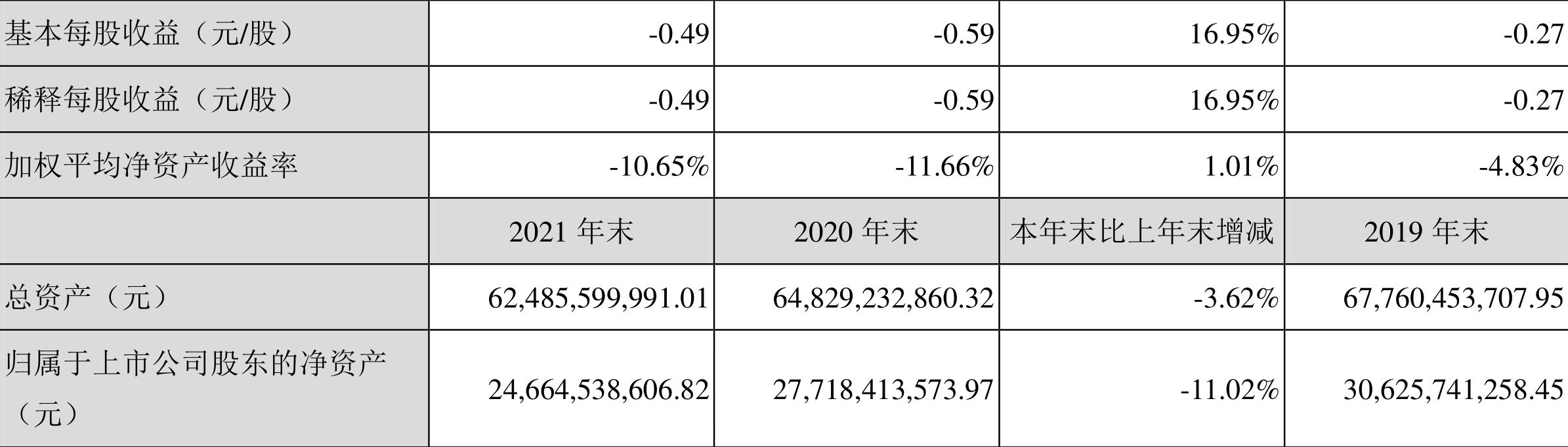 数据显示,2021年公司加权平均净资产收益率为-10.65%,较上年同期增长1.01个百分点,长期低于行业平均;公司2021年投入资本回报率为-4.06%,较上年同期增长0.06个百分点。