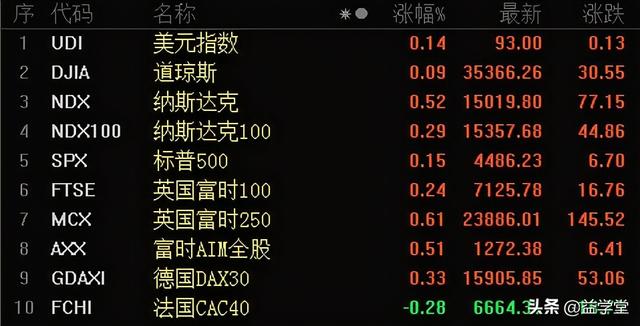 外盘:昨夜,欧美股市涨跌不一,美股三大股指集体上涨,纳指、标普创历史新高,纳指首次站上15000点关口。截止收盘,道琼斯指数涨30.55点,涨幅0.09%,报35366.26点;纳斯达克指数涨77.15点,涨幅0.52%,报15019.80点;标普500指数涨6.70点,涨幅0.15%,报4486.23点。