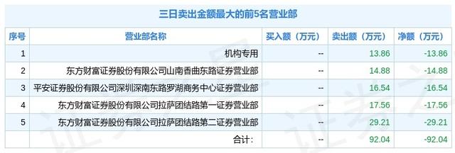 从龙虎榜公布的三日买卖数据来看,机构合计,净卖出-13.86万元。