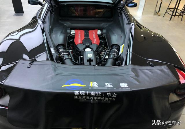 外观检测结束发现一些瑕疵,但不影响使用。现在我们来看看发动机舱:法拉利488GTB:搭载了一台为排量3.9L的双涡轮增压发动机,可以在8000rpm输出最大492kw最大功率,760Nm扭矩则在3000rpm喷薄而出,最大扭矩的输出转速也更低,而单气缸488ml的气缸容积则成为了488GTB的名称来源。据官方消息称,这款车0-100km/h加速时间为3秒,而兰博大牛Aventador官方说到也才2.9,其中有一个配置也是3.0。所以不得不说法拉利这车真的是为了赛车而生。