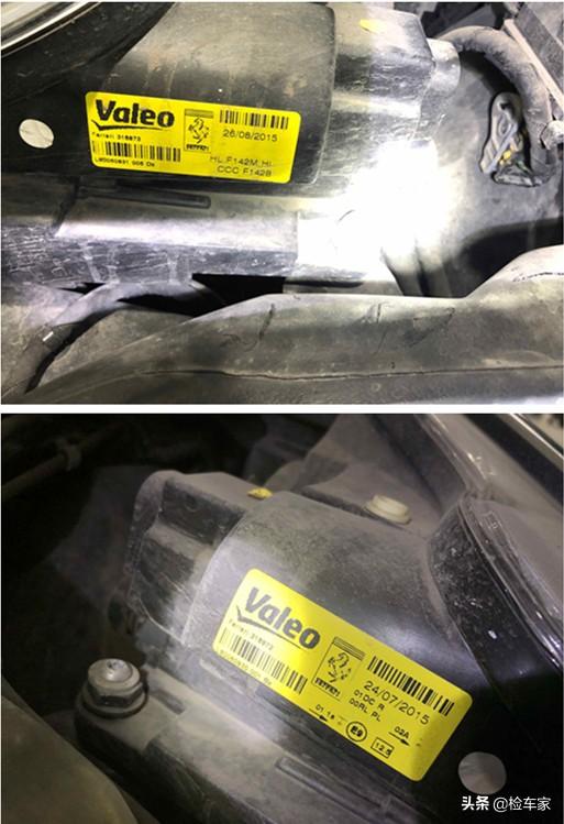 把饰板小心翼翼地拆下来以后,大灯的生产日期一目了然,生产日期正常的,和车的出厂日期相符。检测到这大家可能会说如果换个标签那岂不是就检测不出来了,非也,一般检测不只是看标签,可以结合全车的整体漆面情况和螺丝拆卸情况做判断,不单单是标签,标签只是辅助观察。