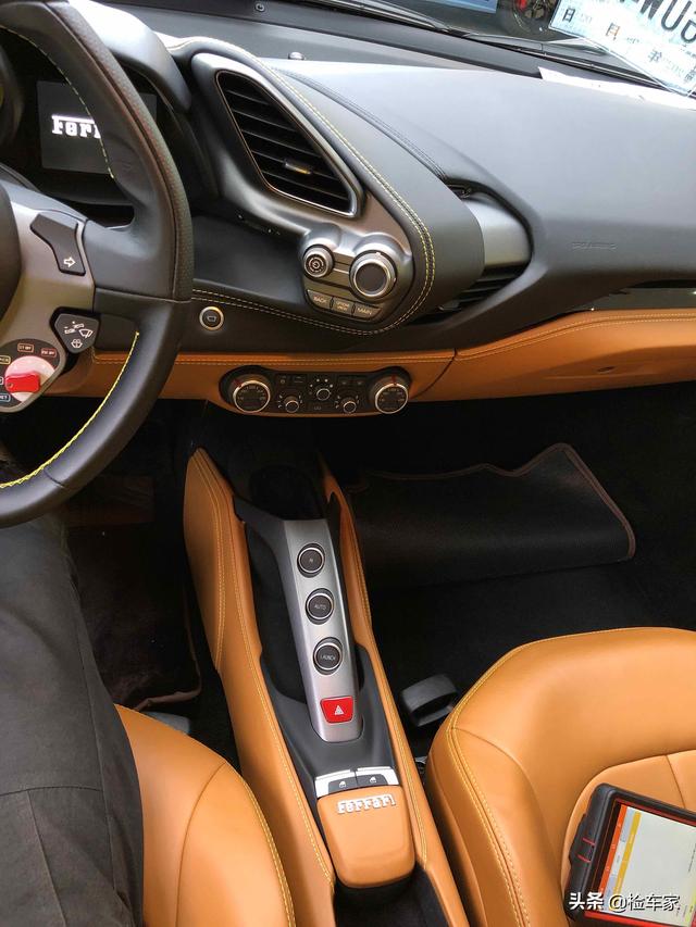 不得不说488内饰是满满的细节啊,看每一处真皮的缝合点都做的非常精细,卖的贵是有他贵的道理在里面。说实在这也是为啥奔驰,宝马的豪华跑车比不过别人的一点,而且法拉利内饰除了自带意大利的艺术气息外,还有那饱满的战斗气息,只为赛车,只为竞速。再做内饰检测时,客户的朋友还说了一句更夸张的话:世上只有两种超跑,一个叫法拉利,一个叫除了法拉利以外的超跑。