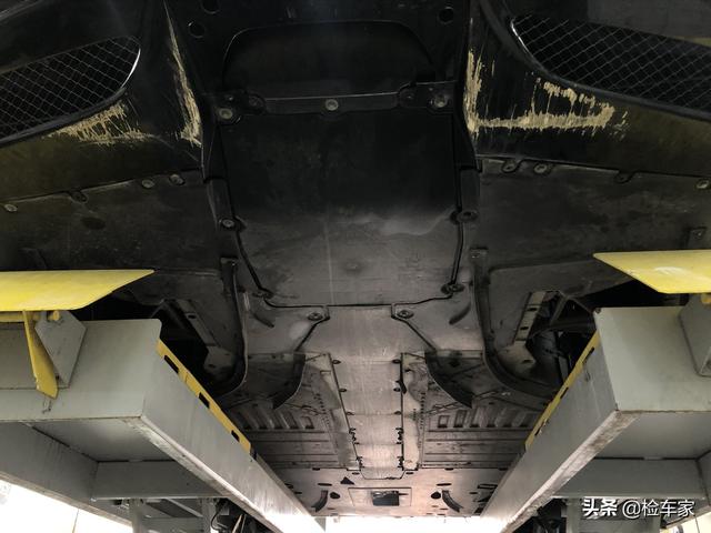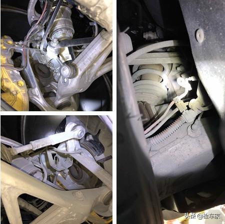 车子的前后悬挂部位比较干燥,没有异常的渗油,各个部件的螺丝无拆卸拧动痕迹,各个悬挂配件也无变形损坏的迹象。