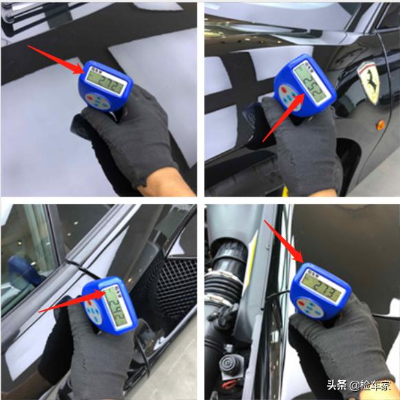 绕车一圈瑕疵不多,大彪我便拿起仪器检测:全车漆面数值在160~180um左右浮动,机盖,左前翼子板,左前车门,后备盖数值在270um左右,而且边缘处有很明显的漆面分层,毫无疑问,肯定是有喷漆修复的 。