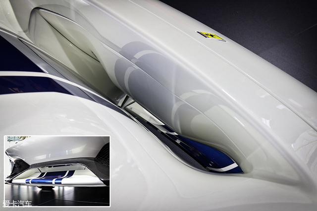 该车的前包围借鉴了F1赛车的S-Duct设计,一部分气流从前杠上方穿出,给前轴提供下压力。另一部分气流向下经过前扩散器,最终从轮圈流出,以形成底部负压。