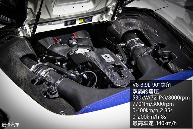 488 Pista Spider搭载了连续三年夺魁“国际发动机评选”的V8 3.9T发动机,并且使用了轻量化曲轴、飞轮与钛合金曲柄,使发动机进一步减掉了18kg重量。性能方面自然也有显著提升,各项数据都很唬人。