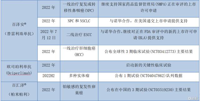 百泽安®自从上市后拓展迅速,目前已经在国内获批8项适应症,2022年预计将会新增复发或转移性鼻咽癌患者一线治疗等适应症获批上市,成为产品进一步放量驱动力。目前,百泽安®在美国FDA和欧洲EMA递交的上市申请也已经在审评中。预计今年年内,百泽安®有望率先实现首次“出海”,凭借与诺华的合作,未来有望在海外带来业绩新增量。