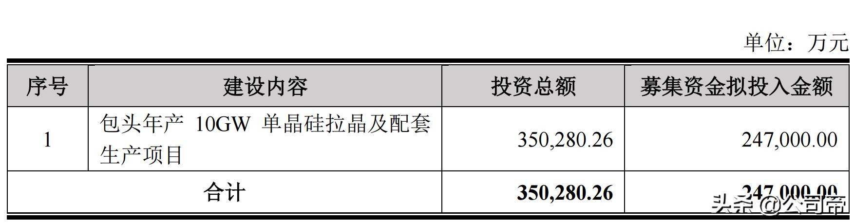 上次定增资金到位3个月之后,上机数控于2021年5月25日再次发出公告,计划发行可转债,募集资金24.7亿元,全部用于包头10GW单晶硅拉晶及配套生产项目。该项目投资完成之后,上机数控将在包头市形成23GW的单晶硅拉晶产能。
