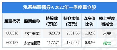 根据2022Q1季报基金重仓股数据,重仓该股的基金共2家,其中持有数量最多的基金为泓德裕泰债券A。泓德裕泰债券A目前规模为22.62亿元,最新净值1.2835(5月16日),较上一交易日上涨0.06%,近一年上涨9.09%。该基金现任基金经理为赵端端。赵端端在任的公募基金包括:泓德裕荣纯债债券A,管理时间为2018年9月25日至今,期间收益率为13.64%;泓德裕泽一年定开债券A,管理时间为2018年10月25日至今,期间收益率为15.51%;泓德裕鑫一年定开债券A,管理时间为2018年10月25日至今,期间收益率为12.68%;泓德裕祥债券A,管理时间为2019年1月15日至今,期间收益率为32.48%。