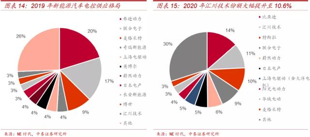 正是考虑到新能源车市场前景较好,以及与自身技术能力紧密关联,2016年汇川技术正式将新能源车作为战略的增量业务,成立汇川联合动力作为实体来实施。2020年汇川技术新能源汽车业务营收11.02亿元,同比增长69%。根据NE时代数据,2020年汇川技术电控产品份额达到10.6%,位居国内第二。