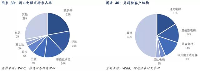 电梯业务是汇川技术第二大业务,2020年销售收入43.44亿元,仅次于通用自动化的约53.15亿元。在2019年收购上海贝思特后,汇川技术可提供包括电梯一体化控制器、人机界面、门系统、线缆线束在内的电气大配套解决方案。其中,电梯一体化控制器产品、人机界面产品的市场占有率均处于行业领先地位。此外还获得了国内占主导的跨国电梯品牌厂商客户。