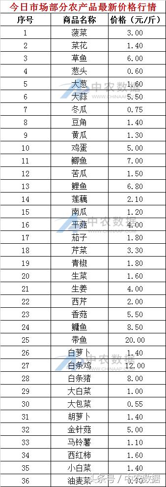 成都农产品中心批发市场是深圳市中农数据有限公司农产品信息采集的重要农批市场之一,中农数据拥有成都农产品中心批发市场在线流通农产品的每日最新价格数据,欢迎各大同行进行咨询、共享相关价格数据。下附今日市场部分农产品最新价格浏览表: