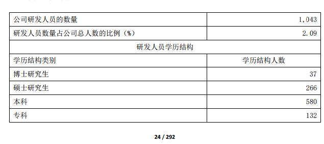按照财报数据,隆基股份投入研发费用8.54亿元,同比增长71%。共有1,043名研发人员,其中博士37人,硕士266人。