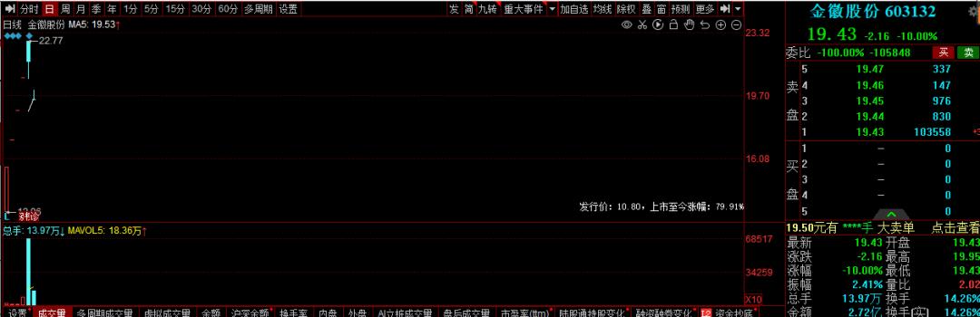 然而,有倒霉的股民抱怨说,今天吃了两碗大面,不仅浙江建投亏了,追涨买入的次新股——金徽股份也跌停了,真是一顿操作猛如虎,结果亏的下月要吃土。