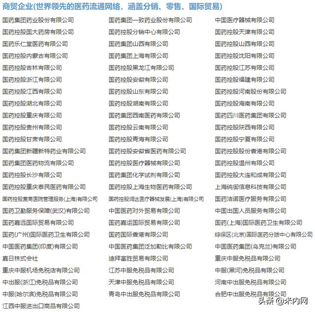 文末附国药集团所属主要单位、企业