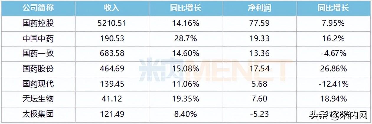 国药集团旗下7家上市公司2021年业绩情况(单位:亿元)