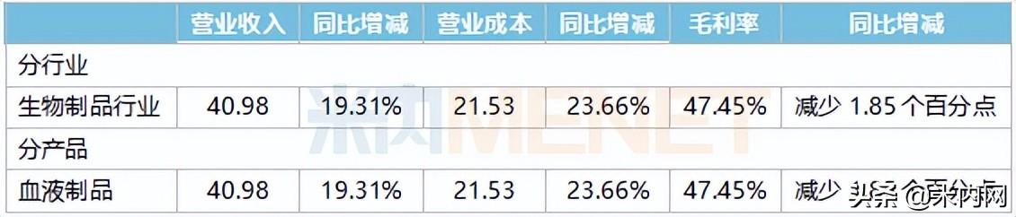 天坛生物2021年主营业务情况(单位:亿元)
