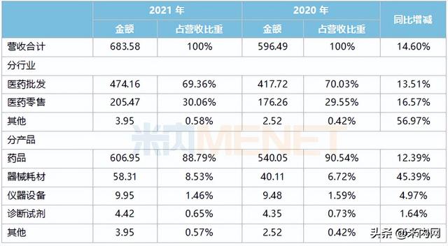 国药股份2021年主营业务情况(单位:亿元)