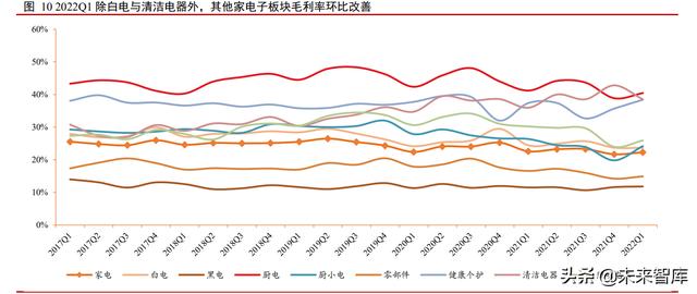2022 Q1 单季度,伴随原材料价格持续高位运行带来较大成本压力以及多地“新冠” 疫情反复对终端消费与生产供应链冲击,家电主要子板块盈利水平承压,大部分细分龙 头标的经营表现超出疫情前 2019 年同期水平,展现出较强经营韧性。中长期来看,我 们认为这些公司业绩有望在后续疫情缓和之后继续表现出优于子板块整体的经营业绩, 主要原因一是疫情后需求持续复苏,细分龙头凭借强品牌力与渠道力有望持续保持领先; 二是新兴赛道如集成灶、洗碗机、清洁电器、智能投影等高景气度持续,原材料上涨与 疫情冲击加速尾部企业出清,后续行业有望实现格局重塑。(报告来源:未来智库)