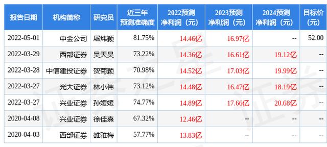 证券之星数据中心根据近三年发布的研报数据计算,中金公司屠炜颖研究员团队对该股研究较为深入,近三年预测准确度均值高达81.75%,其预测2022年度归属净利润为盈利14.46亿,根据现价换算的预测PE为34.89。