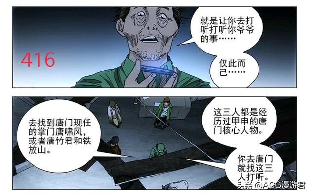 那些什么语句不通顺、错别字、少字等乱七八糟的小失误我们就不谈了,相信大家至今还都还有一个“耿耿于怀”的bug,那就是让张楚岚去找唐门的两个人:唐啸风、唐竹君和铁放山,只是后来这三个人并没有出现,不知道是制作团队哪里出了问题,后来只出现了唐妙兴、唐秋山、张旺,作者没有解释也没有填坑,而是后面偷偷把名称给改了,但是像我这种「伪」铁粉怎么可能没有截图?于是打脸现场就这么产生了……