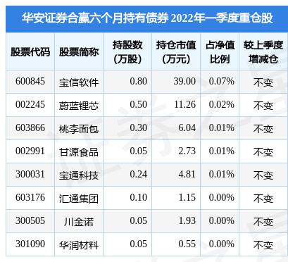 华安证券合赢六个月持有债券的前十大重仓股如下: