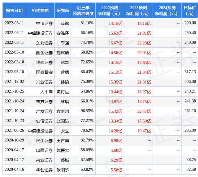证券之星数据中心根据近三年发布的研报数据计算,广发证券袁少州研究员团队对该股研究较为深入,近三年预测准确度均值高达96.55%,其预测2022年度归属净利润为盈利15.42亿,根据现价换算的预测PE为31.54。